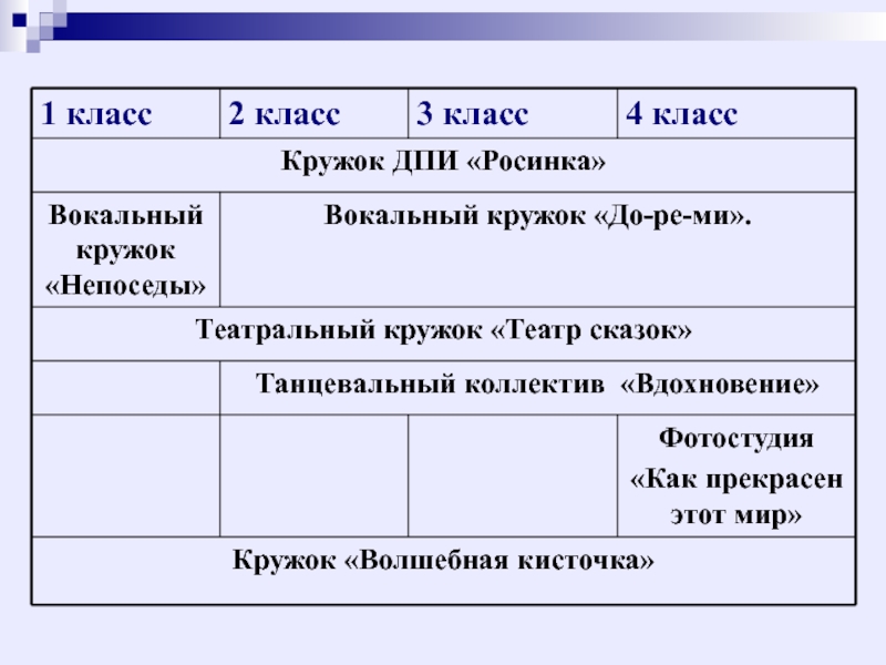 презентаций проектов кружков.