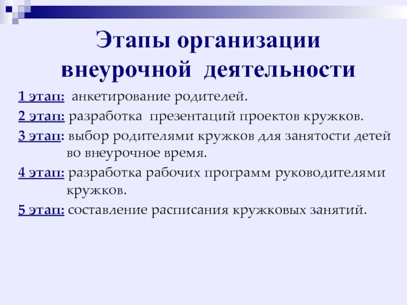 Слайд 10Этапы организации внеурочной деятельности