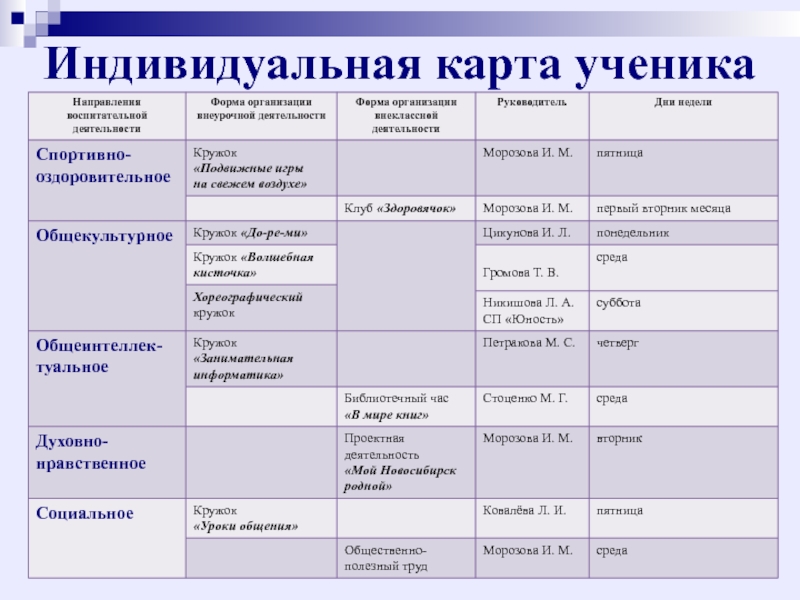 внеурочной деятельности: