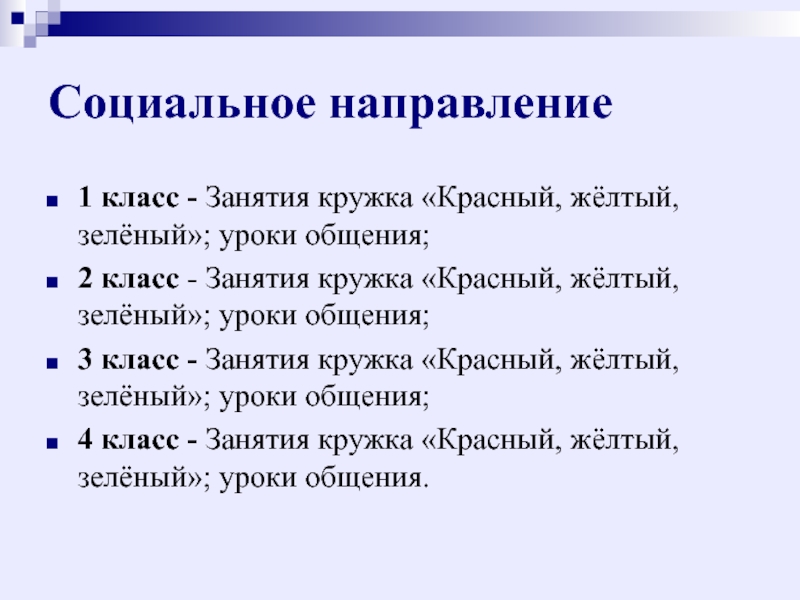 класс - Занятия кружка «Красный, жёлтый, зелёный»; уроки общения;