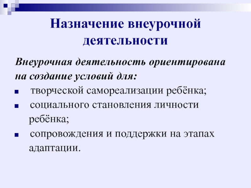 Слайд 4Назначение внеурочной деятельности