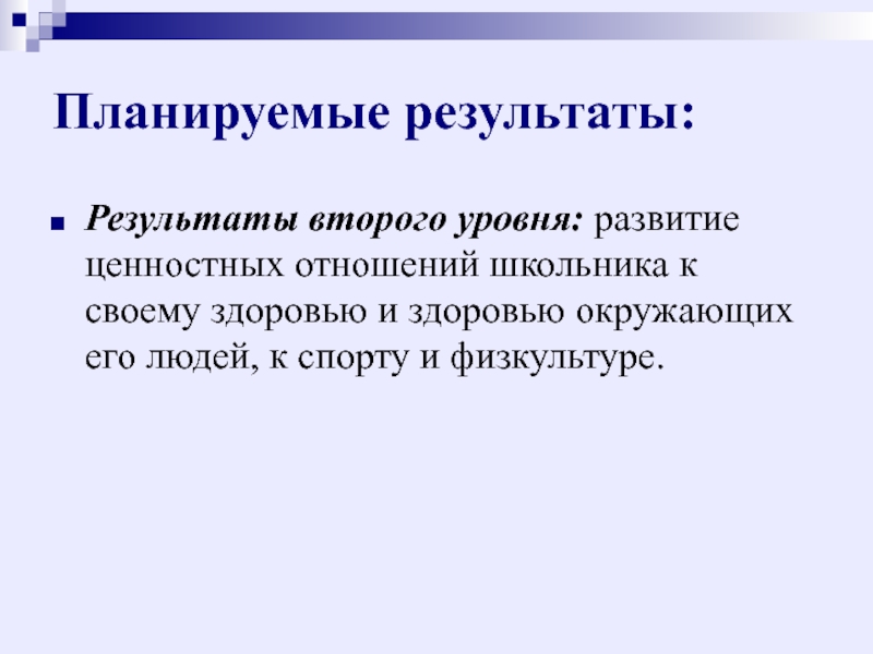 Результаты второго уровня: развитие ценностных отношений школьника к своему здоровью