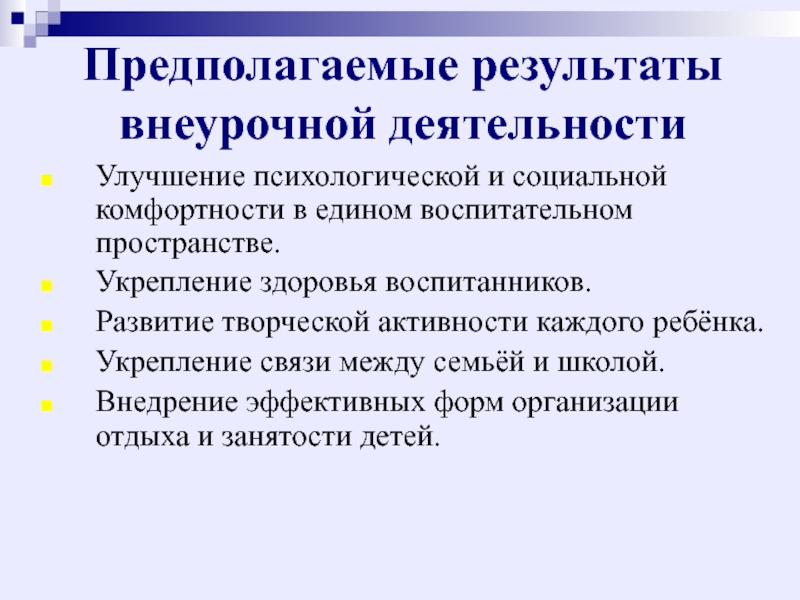 Улучшение психологической и социальной комфортности в едином воспитательном пространстве.