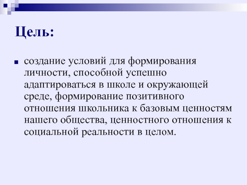 создание условий для формирования личности, способной успешно адаптироваться в школе и