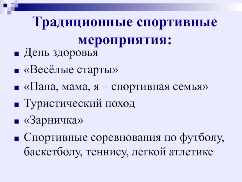 Слайд 15Традиционные спортивные мероприятия: