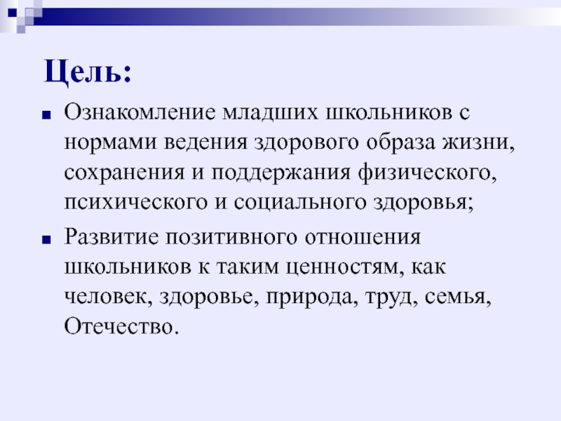 Развитие позитивного отношения школьников к таким ценностям, как человек, здоровье, природа, труд, семья, Отечество.
