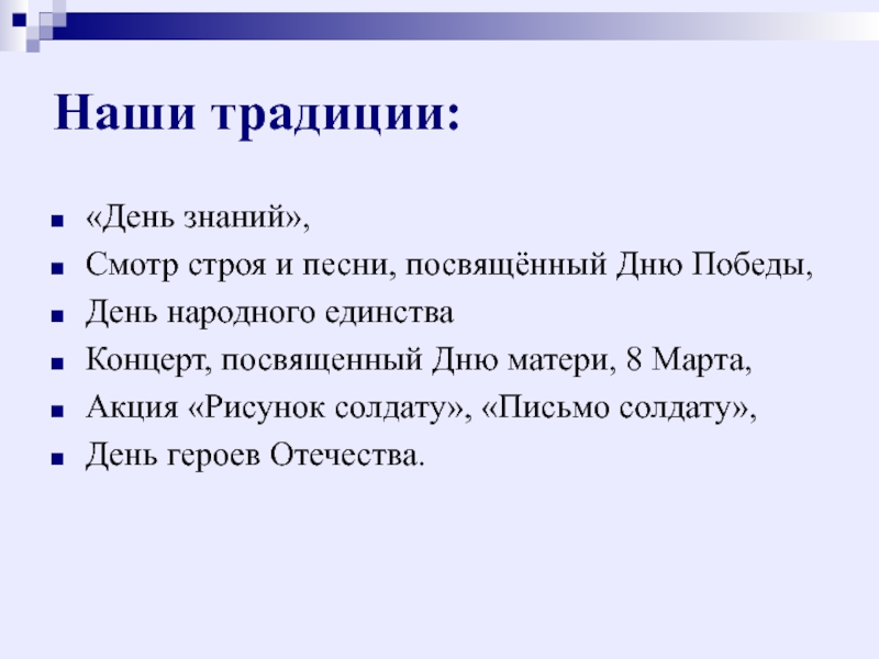 Слайд 44Наши традиции: