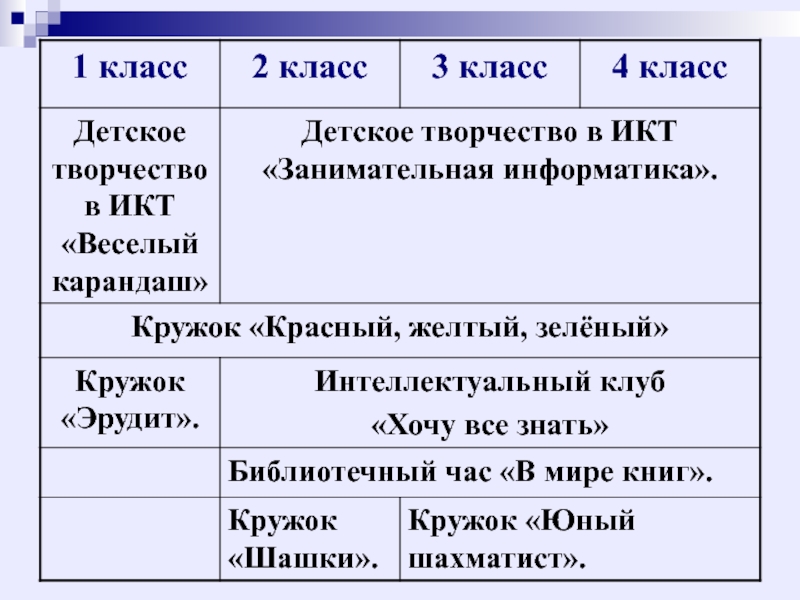 4 класс - Занятия кружка «Красный, жёлтый, зелёный»; уроки общения.