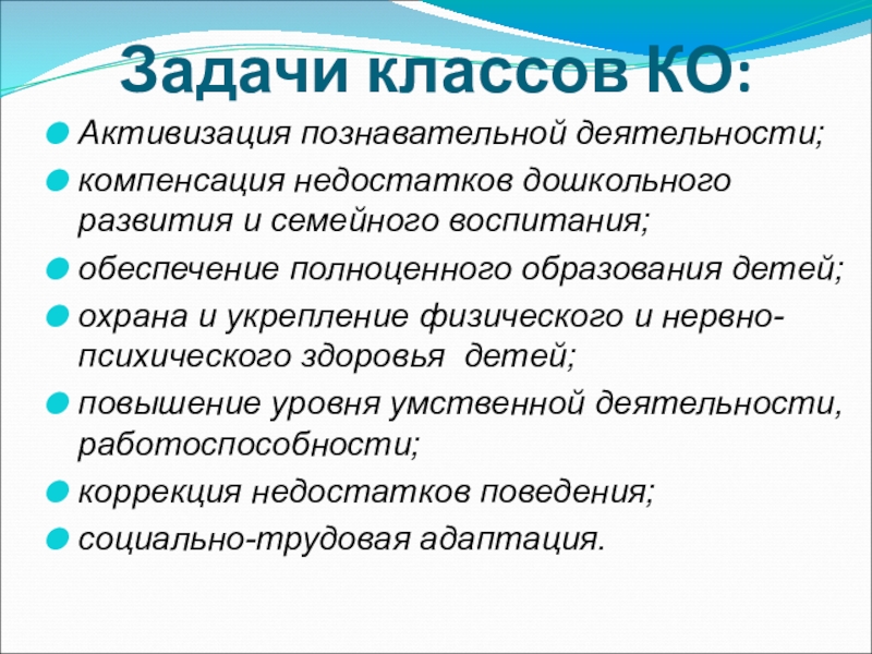 Слайд 14Задачи классов КО: