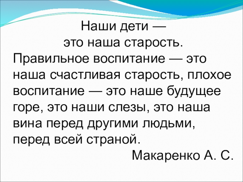 счастливая старость, плохое воспитание — это наше будущее горе, это наши слезы, это наша вина перед другими людьми, перед всей страной.