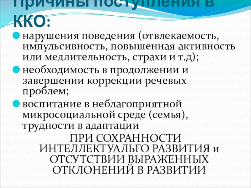 Слайд 15Причины поступления в ККО: