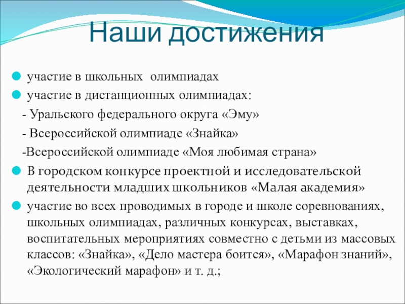участие в школьных олимпиадах