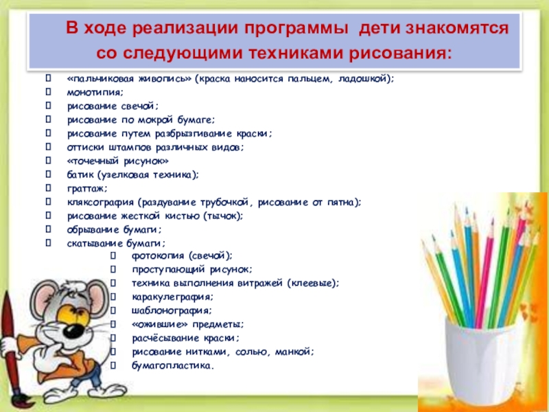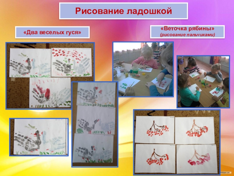«пальчиковая живопись» (краска наносится пальцем, ладошкой);