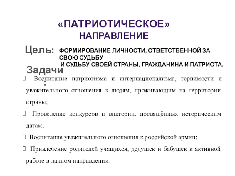 Воспитание патриотизма и интернационализма, терпимости и уважительного отношения к людям, проживающим на территории страны;