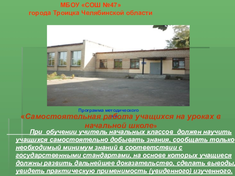 первая из них заключается в том, чтобы развивать у учащихся самостоятельность в познавательной деятельности, научить их самостоятельно овладевать знаниями, формировать своё мировоззрение;
