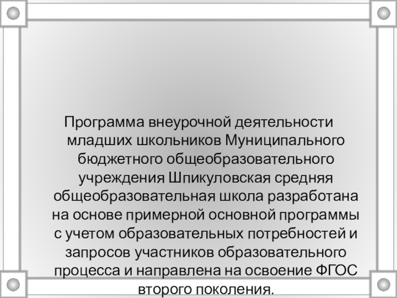 Программа внеурочной деятельности младших школьников Муниципального бюджетного общеобразовательного учреждения Шпикуловская средняя