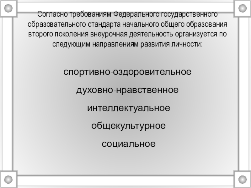 внеурочная деятельность организуется по следующим направлениям развития личности: