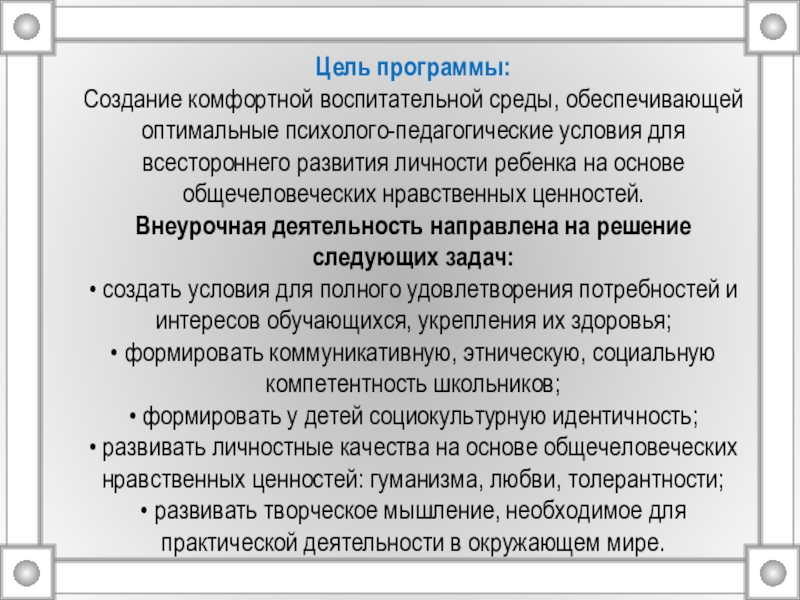 развития личности ребенка на основе общечеловеческих нравственных ценностей.