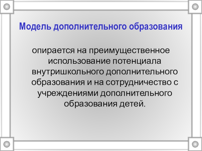 опирается на преимущественное использование потенциала внутришкольного дополнительного образования и