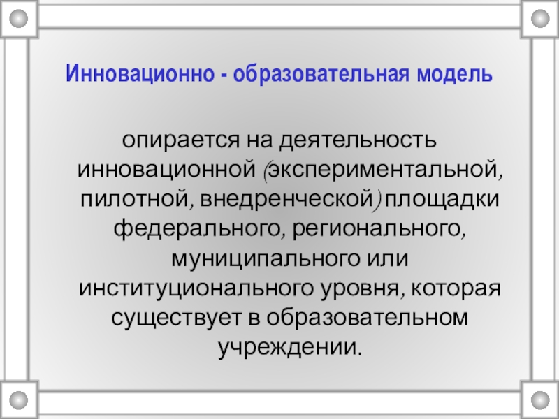 опирается на деятельность инновационной (экспериментальной, пилотной, внедренческой) площадки