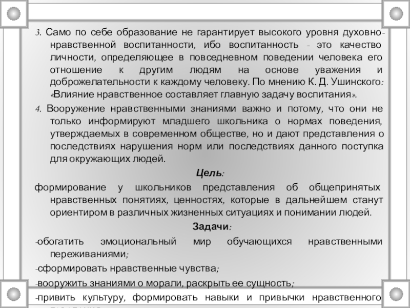3. Само по себе образование не гарантирует высокого уровня духовно-нравственной воспитанности,