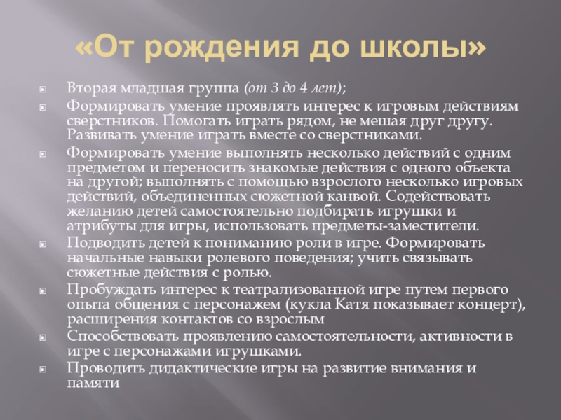 В программе «От рождения до школы» игра направлена на всестороннее развитие