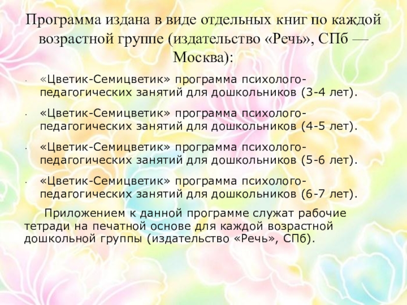 «Цветик-Семицветик» программа психолого-педагогических занятий для дошкольников (4-5 лет).