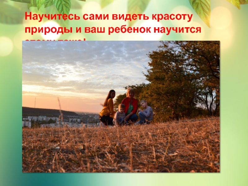 Слайд 18Научитесь сами видеть красоту природы и ваш ребенок научится этому тоже!