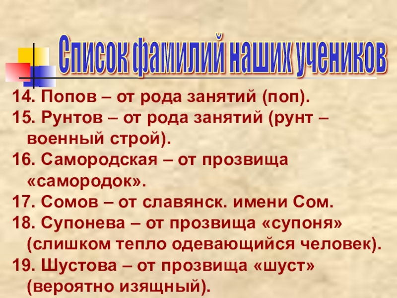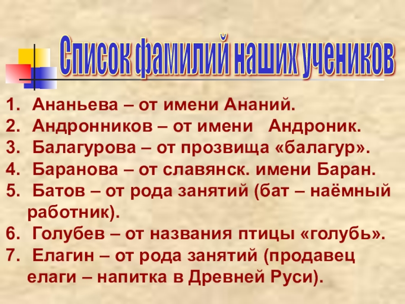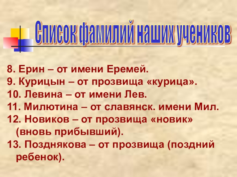 Список фамилий наших учеников