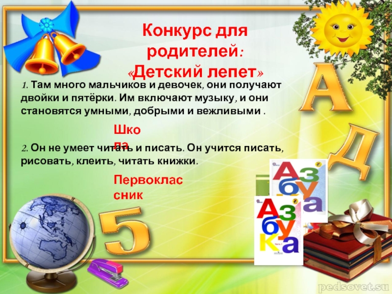 2. Он не умеет читать и писать. Он учится писать, рисовать, клеить, читать книжки.