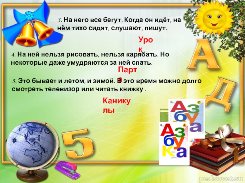 5. Это бывает и летом, и зимой. В это время можно долго смотреть телевизор или читать книжку .