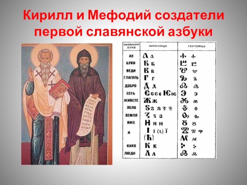 Слайд 2Кирилл и Мефодий создатели первой славянской азбуки