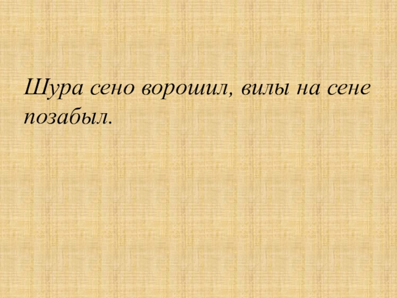 Слайд 11Шура сено ворошил, вилы на сене позабыл.