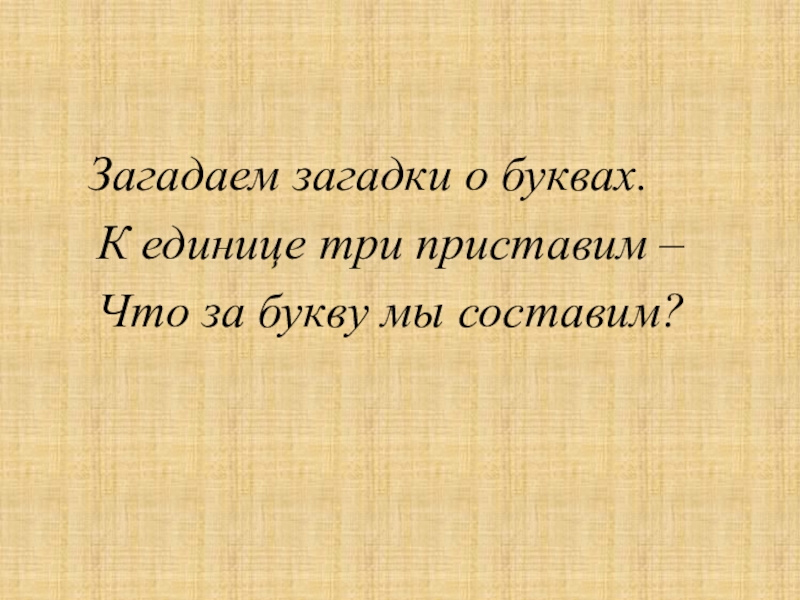 Загадаем загадки о буквах.  К единице три приставим –  Что за букву