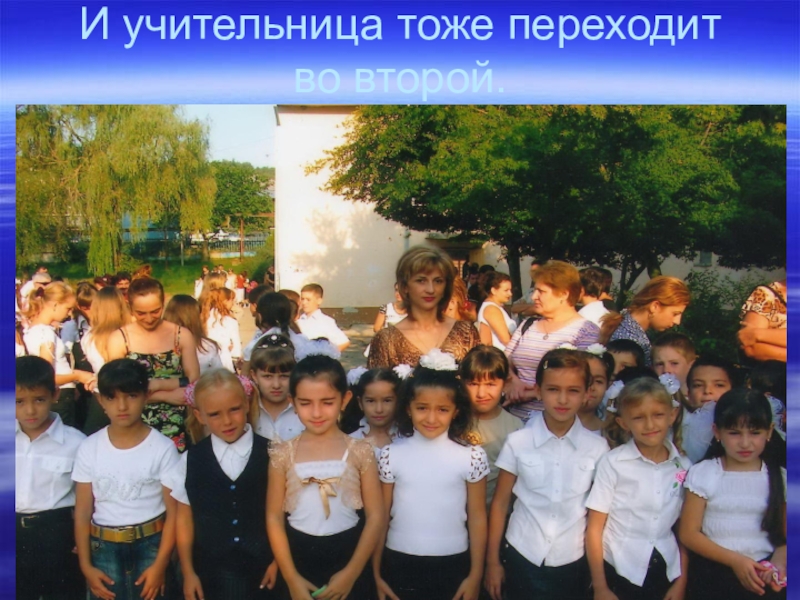Слайд 6И учительница тоже переходит во второй.
