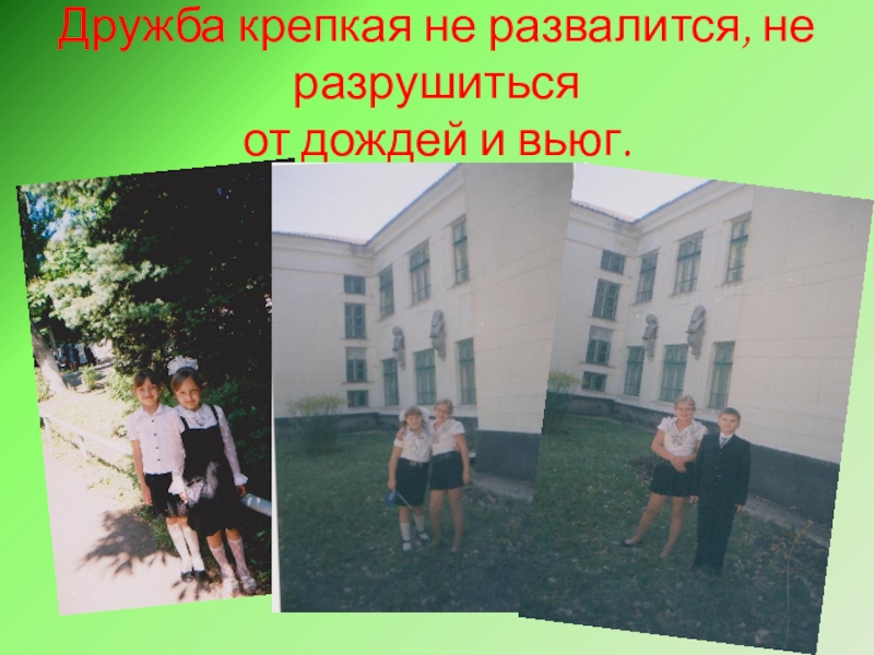 Слайд 14Дружба крепкая не развалится, не разрушиться от дождей и вьюг.