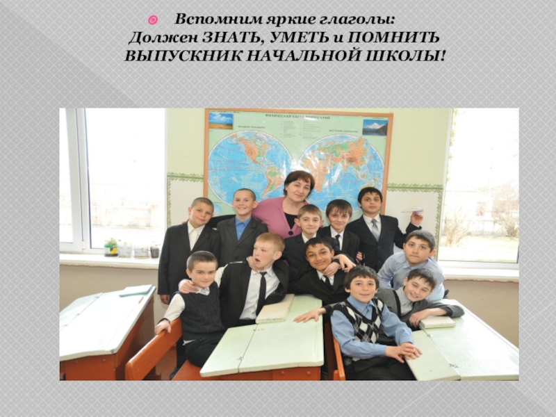 Вспомним яркие глаголы: Должен ЗНАТЬ, УМЕТЬ и ПОМНИТЬ ВЫПУСКНИК НАЧАЛЬНОЙ ШКОЛЫ!