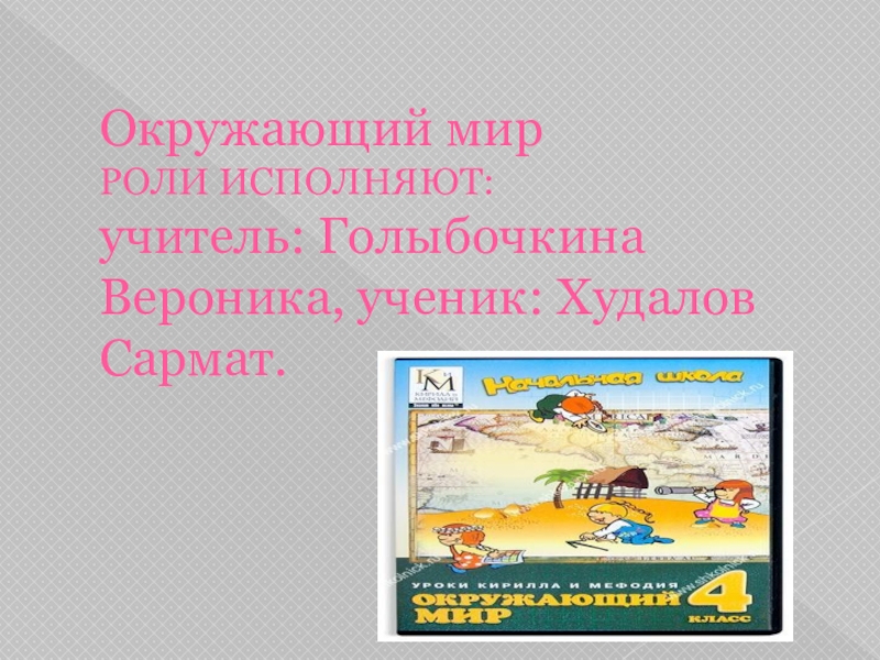 Слайд 7Окружающий мир РОЛИ ИСПОЛНЯЮТ: учитель: Голыбочкина Вероника, ученик: Худалов Сармат.