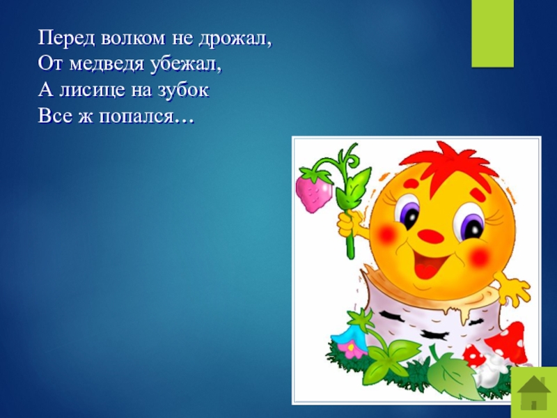 Перед волком не дрожал,От медведя убежал,А лисице на зубокВсе ж попался…