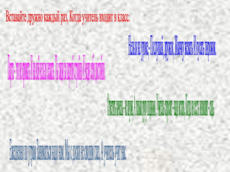 Ответить хочешь - не шуми, А только руку подними. Учитель спросит - надо встать, Когда он сесть позволит - сядь.