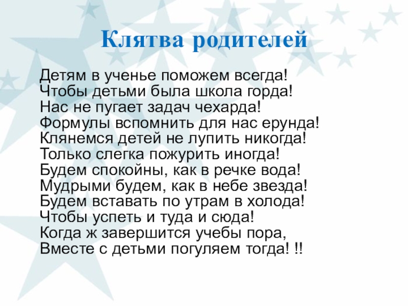 товарищей, перед лицом родителей, перед лицом учителей торжественно клянусь: