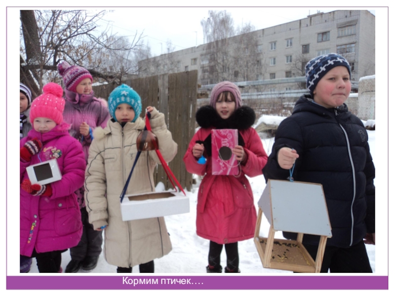 Слайд 20Кормим птичек….