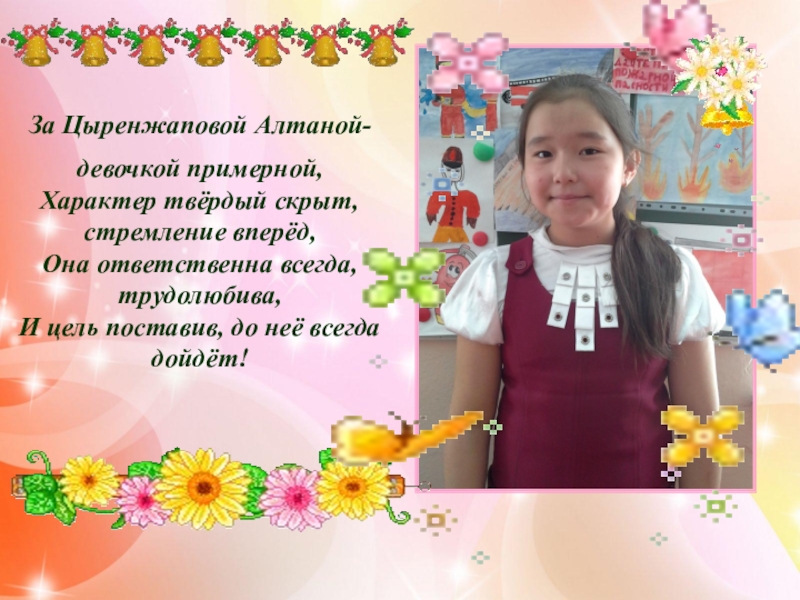 Слайд 28За Цыренжаповой Алтаной-