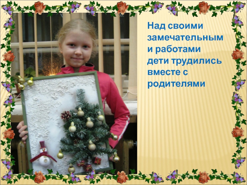 Слайд 13Над своими замечательными работами дети трудились вместе с родителями