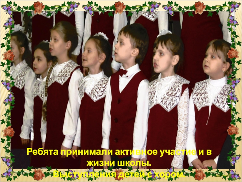 Ребята принимали активное участие и в жизни школы.Выступления детей с хором.