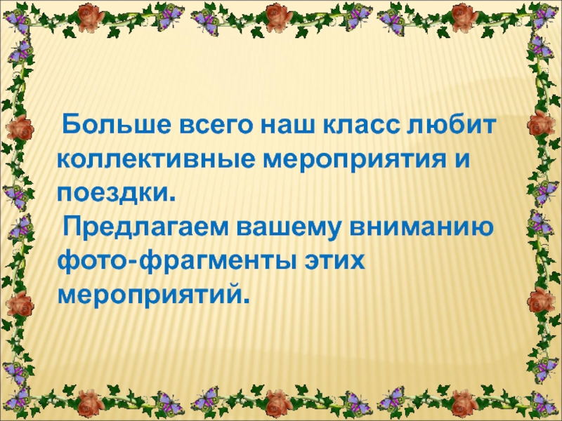 Слайд 16 Больше всего наш класс любит коллективные мероприятия и поездки.
