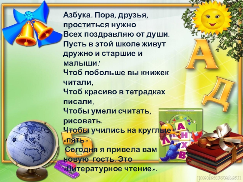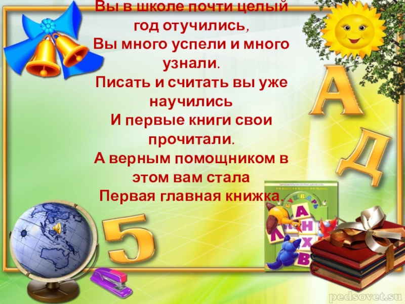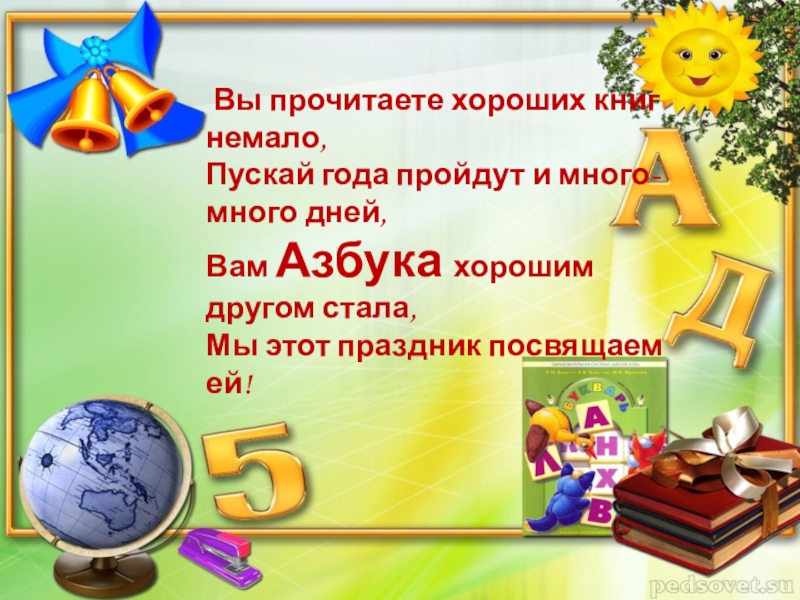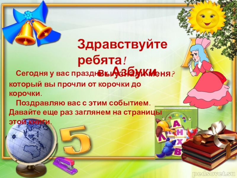 Сегодня у вас праздник Азбуки, который вы прочли от корочки до корочки.