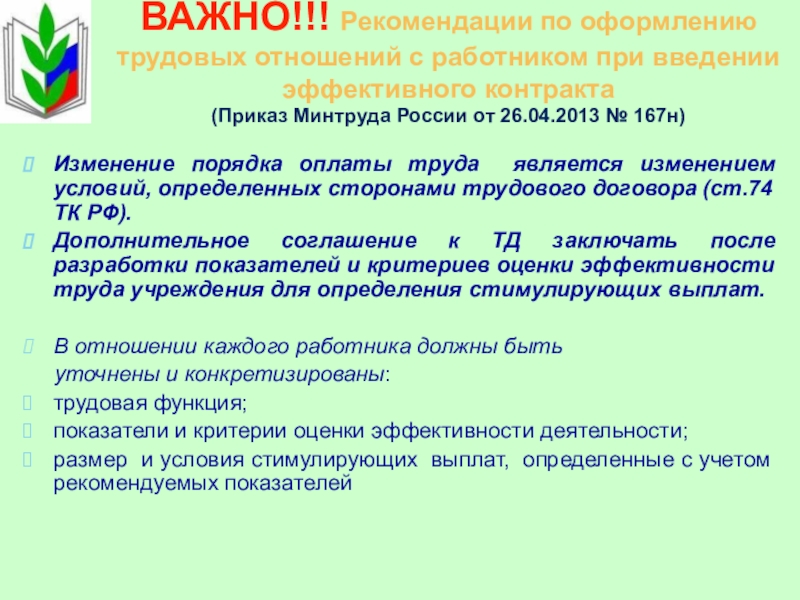 Дополнительное соглашение к ТД заключать после разработки показателей и критериев оценки эффективности труда учреждения для определения стимулирующих выплат.