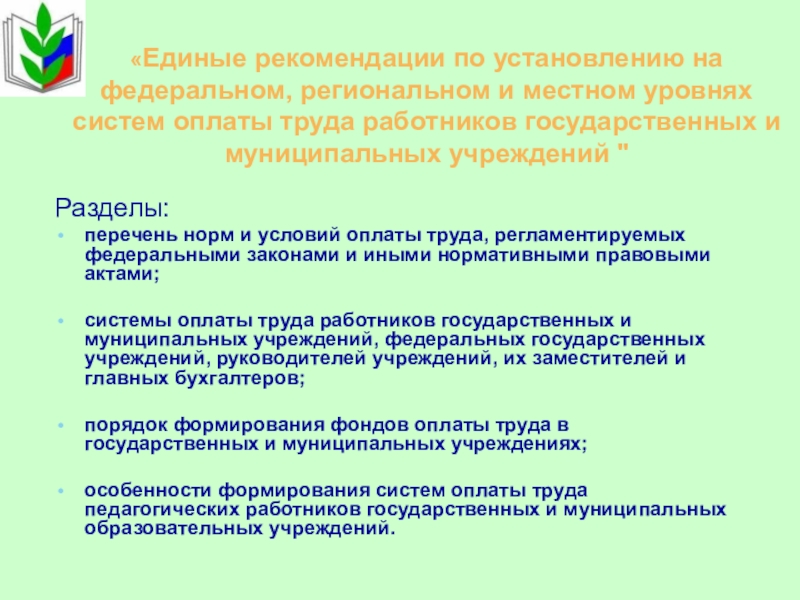 системы оплаты труда работников государственных и муниципальных учреждений, федеральных государственных учреждений, руководителей учреждений, их заместителей и главных бухгалтеров;