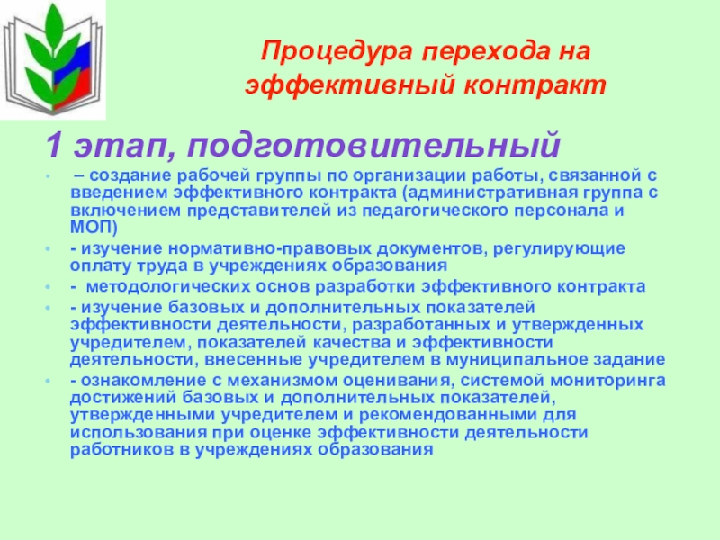 Введение системы отраслевых показателей эффективности от федерального уровня до конкретного ОУ и работника;